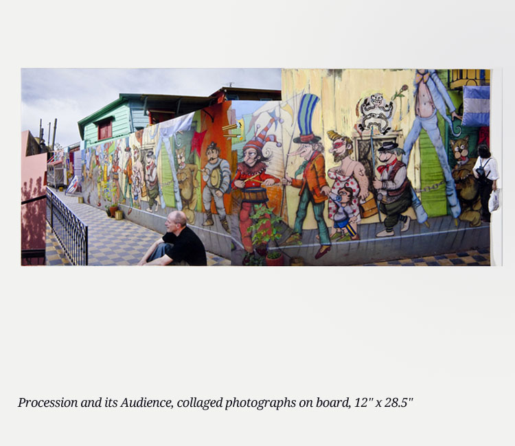 The events leading up to political elections often resemble a circus, with a parade of actors, and a master of ceremonies (campaign organizers and promoters) who oversees the show. I have created eight collaged photographic pieces whose main characters appear as graffiti on walls, or spectators on Buenos Aires streets..